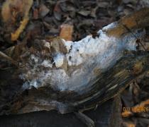 On an old woodpile.\r\nSplash cup diameter ~ 5 mm.
