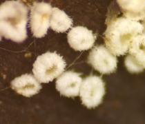 On bark of firewood. Diameter of cup ~ 0.5 mm.