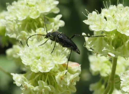On Eriogonum heracleoides (Parsnipflower Buckwheat) flowers.\r\n\r\nThe males have arrived and are all over these plants. No females yet.