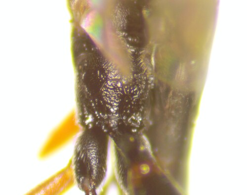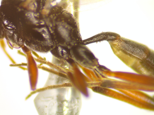About a dozen of these emerged yesterday from spider egg sacs or mantid egg cases collected on March 17. 5 mm