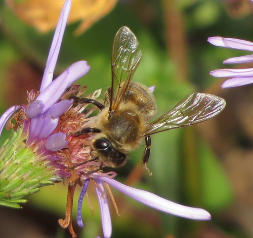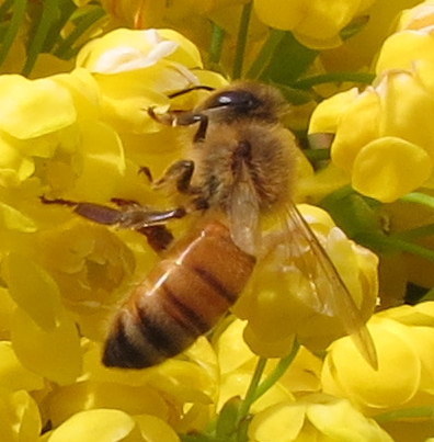 Honey bees are frequent visitors to the yard. They may, in fact, be the most common species of bee in the yard.